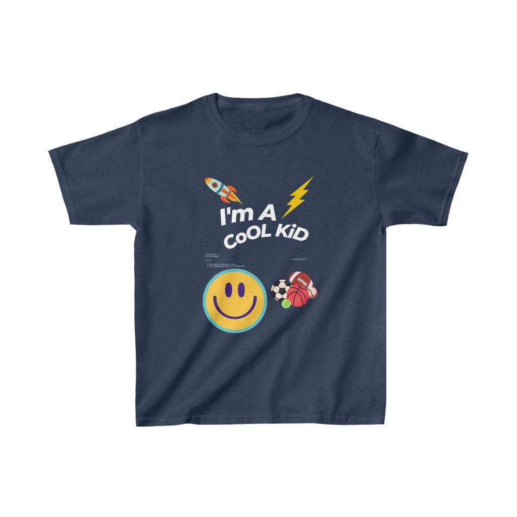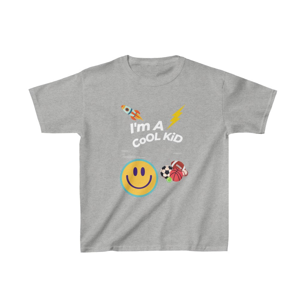 The kids heavy cotton tee is perfect for everyday use. The fabric is 100% cotton for solid colors. Polyester is included for heather-color variants. These fabrics are prime materials for printing. The shoulders have twill tape for improved durability. The collar is curl resistant due to ribbed knitting. There are no seams along the sides.